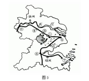 3.南京、上海、杭州三城市所对应序号正确的是 ( )