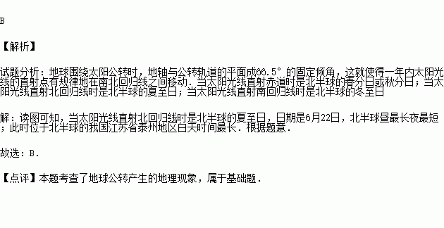 A.赤道 B.北极圈 C.南极点 D.北回归线