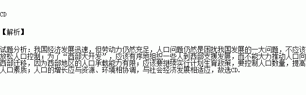 A.我国经济发展迅速,对劳动力需求大,应放松人口控制