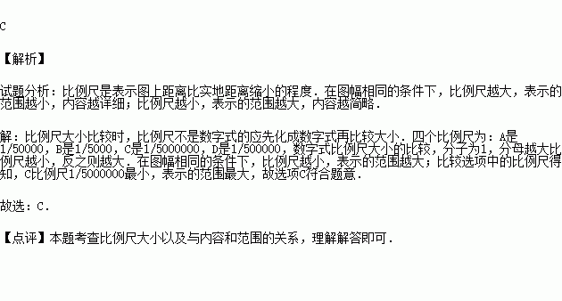 下列表示的比例尺中,图幅相同的情况下,表示的范围最大的是( )