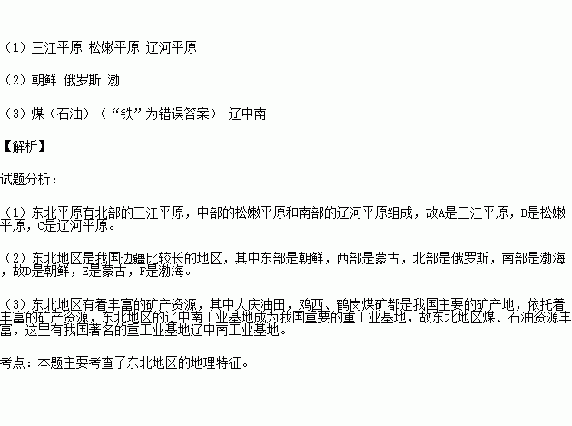 (3)东北三省矿产资源丰富,特别是 _________ 等能源矿产在全国有重要的地位.这里依托丰富的资源,发展成为我国重要的工业基地.这里有我国最大重工业基地 _________ 工业基地。