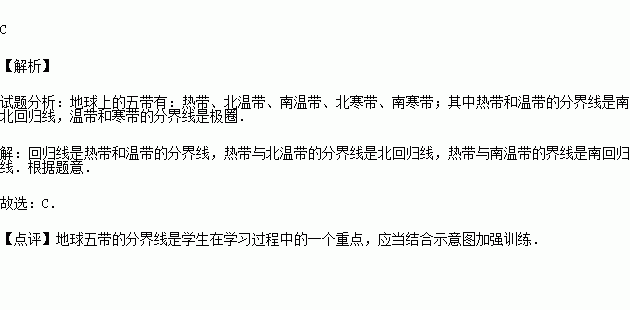 A.赤道 B.南回归线 C.北回归线 D.北极圈
