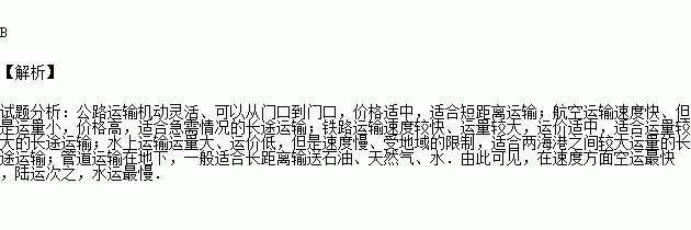 C、陆运最快,空运次之,水运最慢 D、水运最快,空运次之,陆运最慢