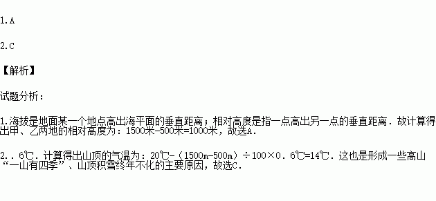 2.在乙地测得气温是20 ℃,若只考虑海拔的影响,甲地的气温大约是( )
