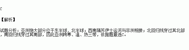 C.亚洲跨寒、温、热三带 D.赤道和北回归线分别穿过亚洲南部和中部