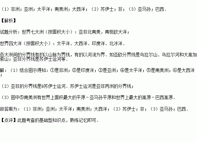 (3)图中⑤大洲有世界上最著名的平原为 平原,有世界上最大的高原为 高原.