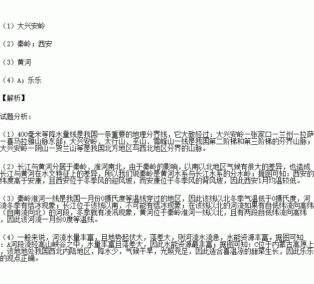 (4)图示长江黄河ABCD四河段中,水流湍急、水能最丰富的是__________,对于C河段所在地农业发展讨论中,可可与乐乐观点不同,根据因地制宜原则,你认为谁的观点正确?__________。