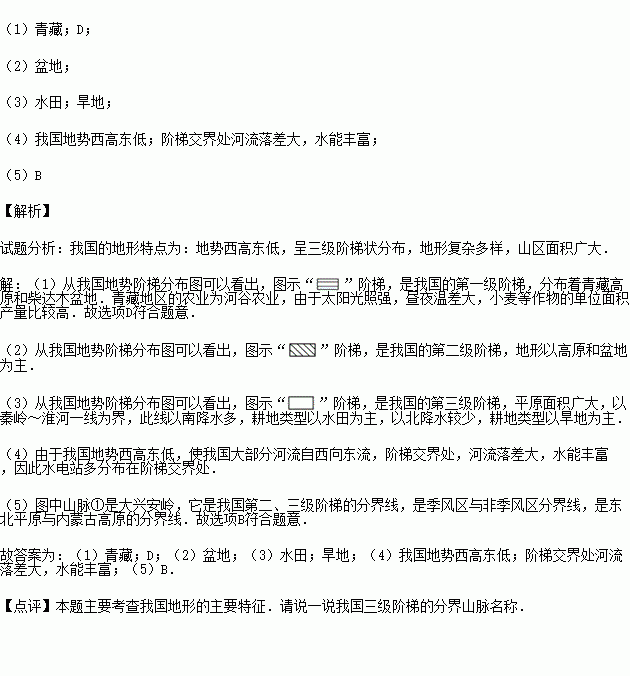 (4)“一江春水向东流”、“滚滚长江东逝水”反映了我国河流的流向多是自西向东,其原因是 ;图中水电站多分布在阶梯交界处,原因是 .