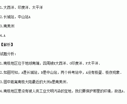 1.南极地区周围的大洋E__________G__________F__________