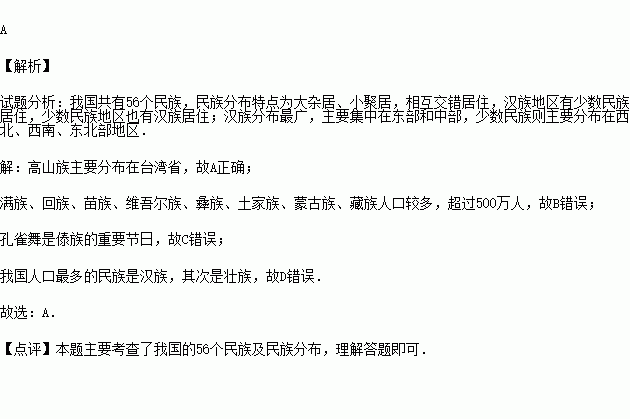 A.高山族主要分布在台湾省