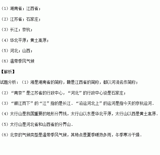 (1)文中提到的“湘”“赣”分别是指什么省份?
