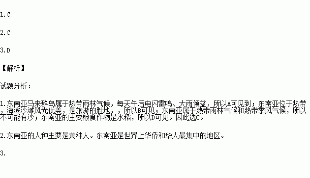 有一批中国游客到东南亚旅游,欣赏了东南亚美丽的自然和人文风光。请你根据所学知识回答下列问题。