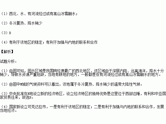 (4)试简述国家新设立可克达拉市等城市的社会经济意义(至少两点) 。