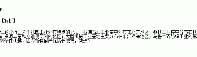 B.钢铁工业集中分布在铁矿资源丰富的地区