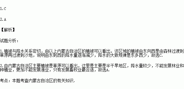 1.植被与降水关系密切,据图推断内蒙古自治区年降水量的分布规律大致是