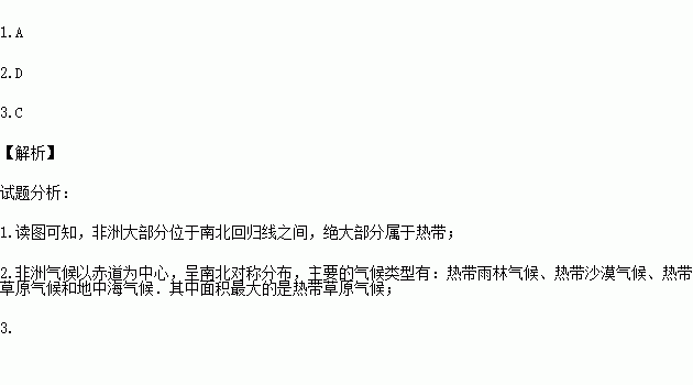 2.非洲的气候类型中,分布面积最广一种的是:( )