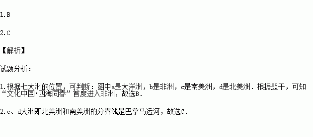 1.图中字母表示“文化中国·四海同春”首度进入的大洲是( )