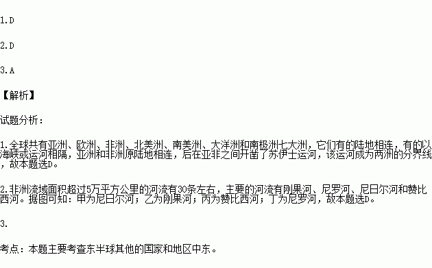 3.乙、丙、丁三地为同一类气候,这体现了亚洲气候的哪一特点