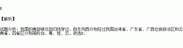 北回归线从东向西穿过我国的省级行政区域有