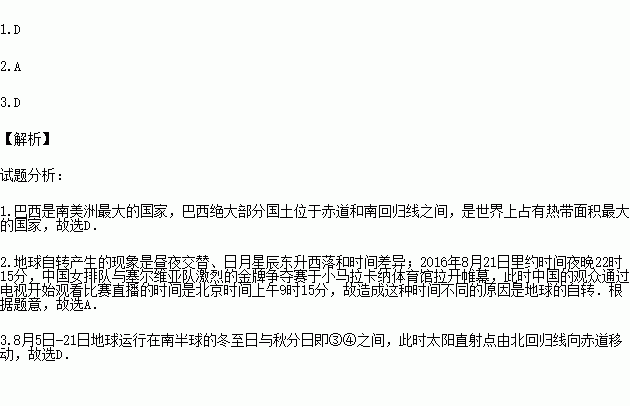 2.2016Äê8ÔÂ21ÈÕÀïԼʱ¼äÒ¹Íí22ʱ15·Ö£¬ÖйúÅ®ÅŶÓÓëÈû¶ûάÑǶӼ¤ÁҵĽðÅÆÕù¶áÈüÓÚСÂíÀ¿¨ÄÉÌåÓý¹ÝÀ¿ªá¡Ä»£¬´ËʱÖйúµÄ¹ÛÖÚͨ¹ýµçÊÓ¿ªÊ¼¹Û¿´±ÈÈüÖ±²¥µÄʱ¼äÊDZ±¾©Ê±¼äÉÏÎç9ʱ15·Ö£¬Ôì³ÉÕâÖÖʱ¼ä²îÒìµÄÔÒòÊÇÒòΪ £¨ £©