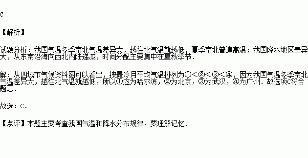 A.季风气候显著 B.大陆性较强 C.气候复杂多样 D.年降水量均匀