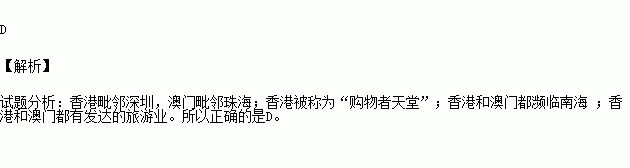 A.香港与珠海经济特区相邻 B.澳门被称为“购物者天堂”