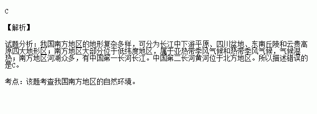 C、南方地区河湖众多,中国第一长河和第二长河均流经南方