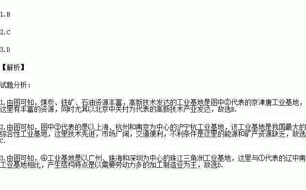 ¶«²¿Ñغ£¹¤ÒµµØ´øÊÇÎÒ¹ú¾¼Ã×î·¢´ïµÄµØ´ø£¬ÓÉÈô¸É¹¤Òµ»ùµØ×é³É¡£¶Á¡°¶«²¿Ñغ£¹¤ÒµµØ´øÍ¼"£¬»Ø´ðÏÂÁÐÎÊÌâ¡£