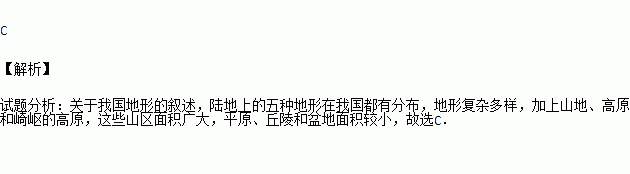 A. 地形复杂多样,平原面积广大 B. 地形复杂多样,盆地面积广大