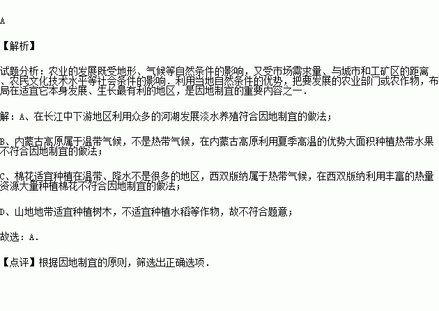 A.在长江中下游地区利用众多的河湖发展淡水养殖