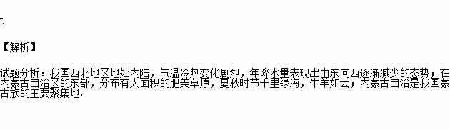 “美丽的草原我的家,风吹草低遍地花,骏马好似彩云朵,牛羊好似珍珠洒……”,歌词中描述的少数民族传统生活的地区景观属于( )