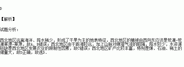 D.本区矿产比较丰富,特别是煤、石油、天然气的储量大