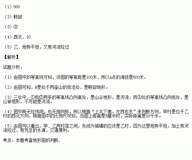 (5)甲、乙两村落中,将来更有可能演变成为城市聚落的是________________,判断理由是________________________________________。
