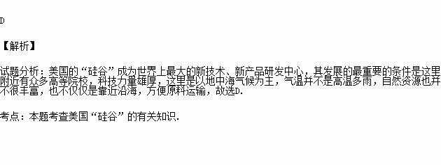 读“美国硅谷示意图”,美国的“硅谷”成为世界上最大的新技术、新产品研发中心的最重要条件是