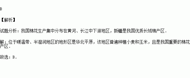 位于暖温带、半湿润地区,普遍种植小麦和玉米,且是全国三大棉区之一.你知道这是哪个地区吗?( )