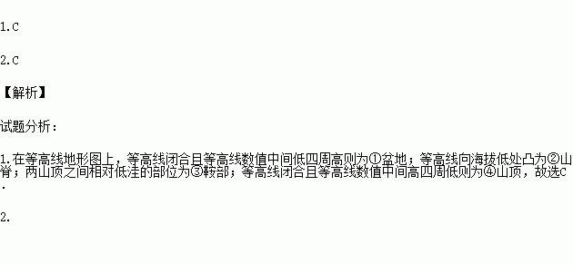 1.图中的数字表示地形的部位,下列选项中,地形部位名称排列与图序相符的是 ( )