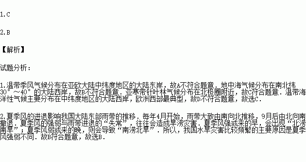 2.亚洲季风气候区水旱灾害频繁的主要原因是