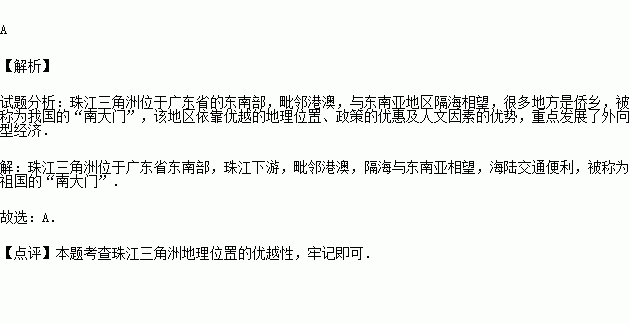 我国改革开放已有30多年,成绩斐然.属于我国对外开放的前沿,被称为祖国的“南大门”的地区是指( )