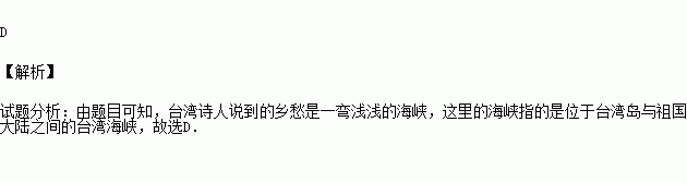 我国著名诗人余光中先生在《乡愁》诗中写到“…而现在,乡愁是一弯浅浅的海峡,我在这头,大陆在那头”诗中“海峡”是指