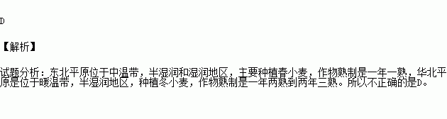 下列地区关于东北平原和华北平原的比较,不正确的是( )