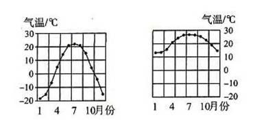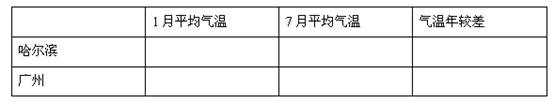 读哈尔滨和广州气温变化曲线图,分析回答问题。