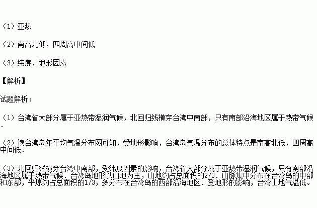 (2)由图判断台湾岛年平均气温分布的特点是什么?_________.