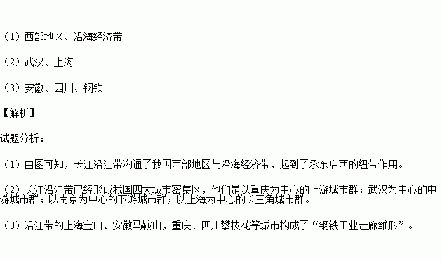 (2)长江沿江带已经形成我国四大城市密集区,他们是以重庆为中心的上游城市群,以 为中心的中游城市群,以南京为中心的下游城市群,以 为中心的长三角城市群。