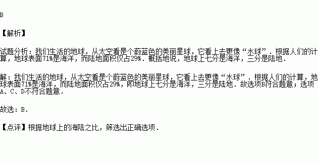 B.地球上大约七分是海洋,三分是陆地