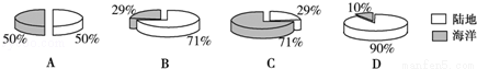 如图四幅图中能正确表示地球海陆面积比例的是( )