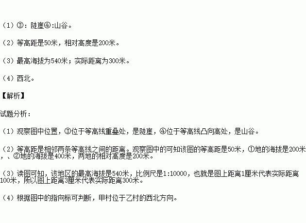 (4)图中甲村位于乙村的 方向。