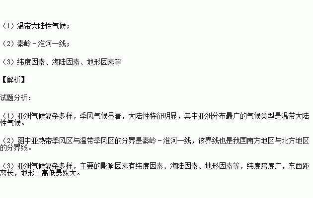 (3)亚洲气候复杂多样,其主要影响因素有哪些? .