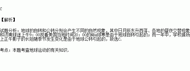 D.济南球迷上午9:00观看美国当地时间20:00举行的NBA篮球赛