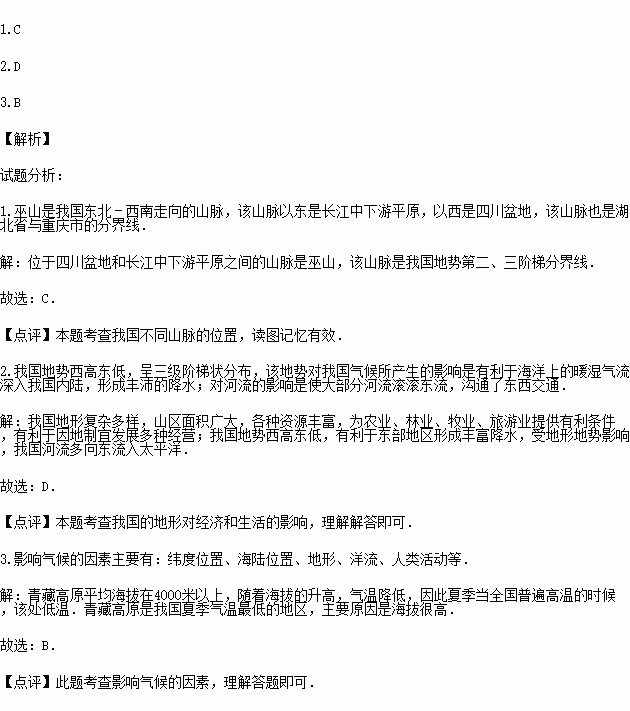 1.ͼÖÐËÄ´¨ÅèµØÓ볤½ÖÐÏÂÓÎÆ½ÔÖ®¼äµÄɽÂöÊÇ£¨ £©