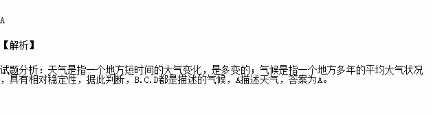 (4)A、B两地纬度一样,而________点气温相对低,原因是_______________________________。